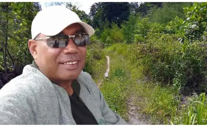 Tampak Tokoh Muda Kabupaten Kepulauan Aru Askar Dumgair, mengambil dokumentasi salah satu bukti proyek mangkrak yakni jalan lingkar Pulau Wamar, yang menghabiskan uang negara Rp.20 Miliar.