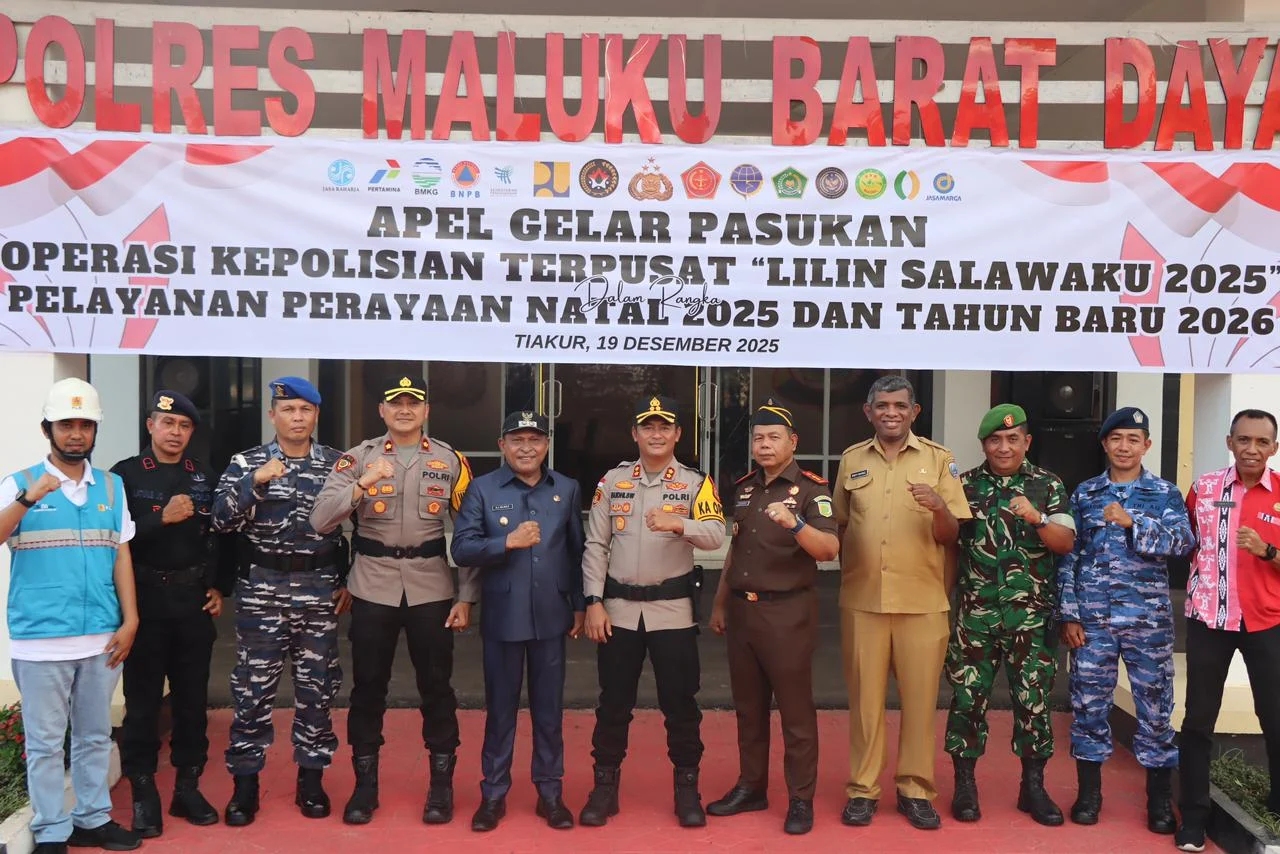 Apel Gelar Pasukan Operasi Terpusat “Lilin Salawaku tahun 2025” Polres Maluku Barat Daya dilapangan Mapolres, Jumat (19/12/2025), bertindak selaku Inspektur apel Wakil Bupati, Agustinus Lekwardai Kilikily, di dampingi Kapolres, AKBP Budhi Suriawardhana.