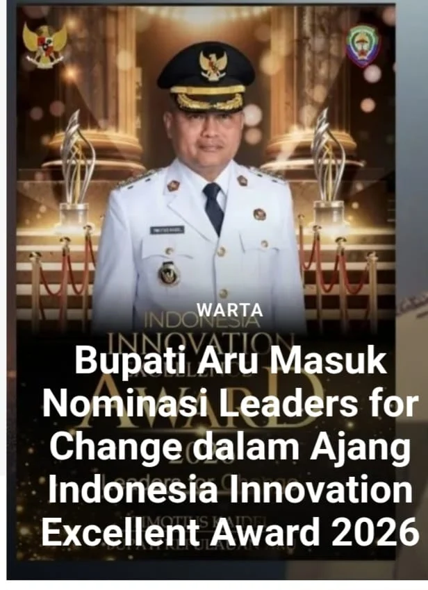 Delikmaluku29news.com,-Ambon,-Karena dinilai mampu membawa terobosan pesat bagi pemerintahan Kabupaten Kepulauan Aru, Bupati Timotius Kaidel masuk dalam nominasi Leaders for Change dalam ajang Indonesia Innovation Excellent Award 2026.