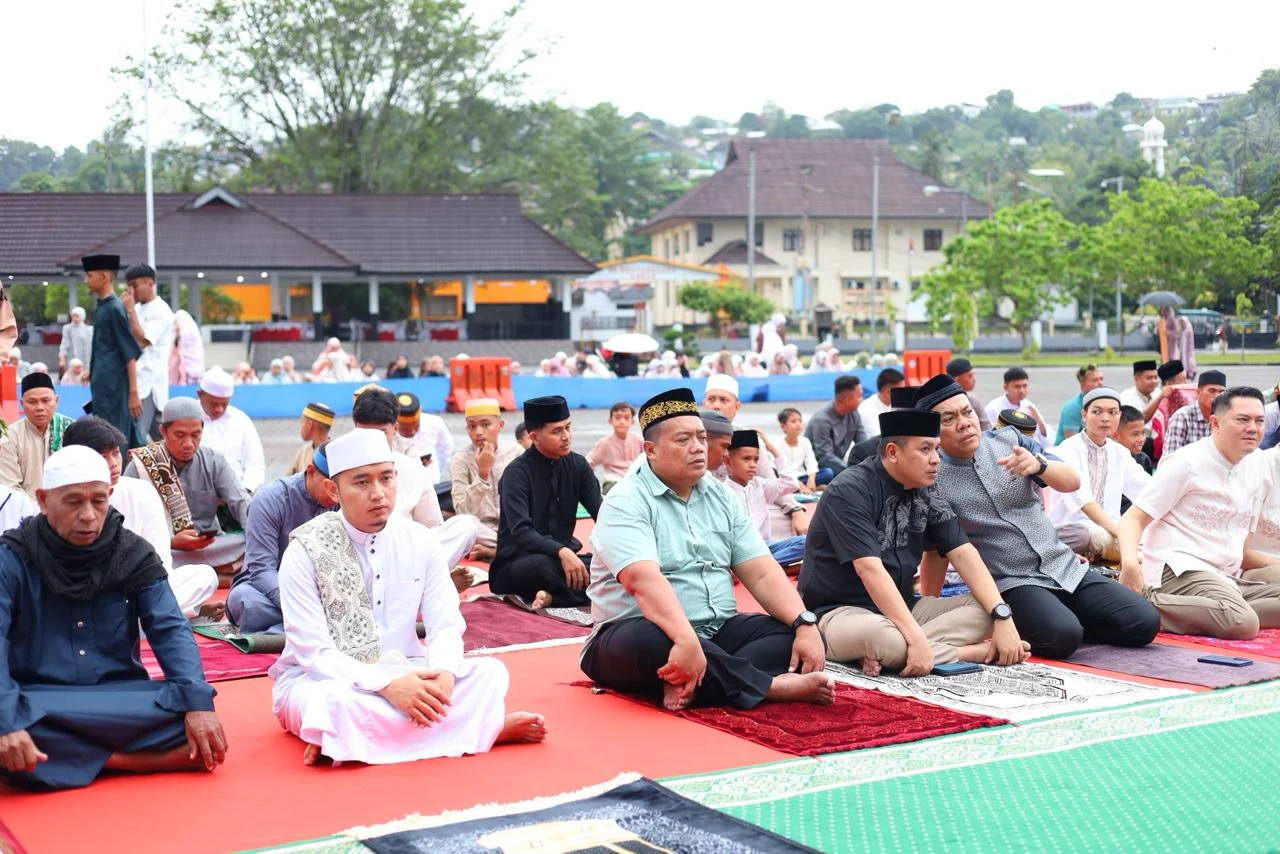 Salat Id yang dimulai pukul 06.45 WIT tersebut tetap berlangsung khusyuk. Ribuan jemaah, termasuk personel Polda Maluku dan keluarga, bertahan mengikuti ibadah hingga selesai meski cuaca kurang bersahabat.