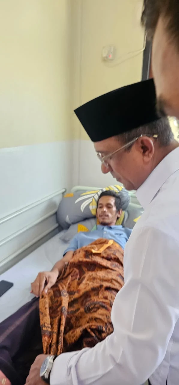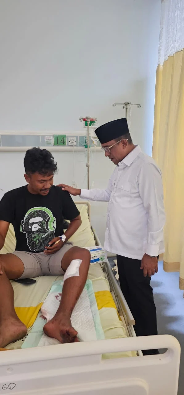 Bupati Malteng Zulkarnain Awar Amir, tengah mengunjungi korban bentrok di RS.
