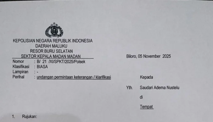“Jadi untuk laporan pengaduan itu kan baru masuk tanggal 5 kemarin, nah, kami langsung tindaklanjuti dengan mengirim surat undangan klarifikasi ke pihak terlapor Sabtu,8 November besok, pertemuan itu juga akan hadir pelapor. Tujuannya adalah kita mau mediasi cari solusi yang terbaik antara kedua belah pihak, tapi kalau memang langkah mediasi itu tidak ada titik temu, ya kita nanti serahkan saja kepada pelapor, kira-kira mau tindaklanjuti ke proses pidana atau seperti apa,nanti kita lihat pertemuan besok ini,” ungkap IPDA La Ali, saat dikonfirmasi Delikmaluku29news.com,via selulernya, Jumat (7/11/2025).