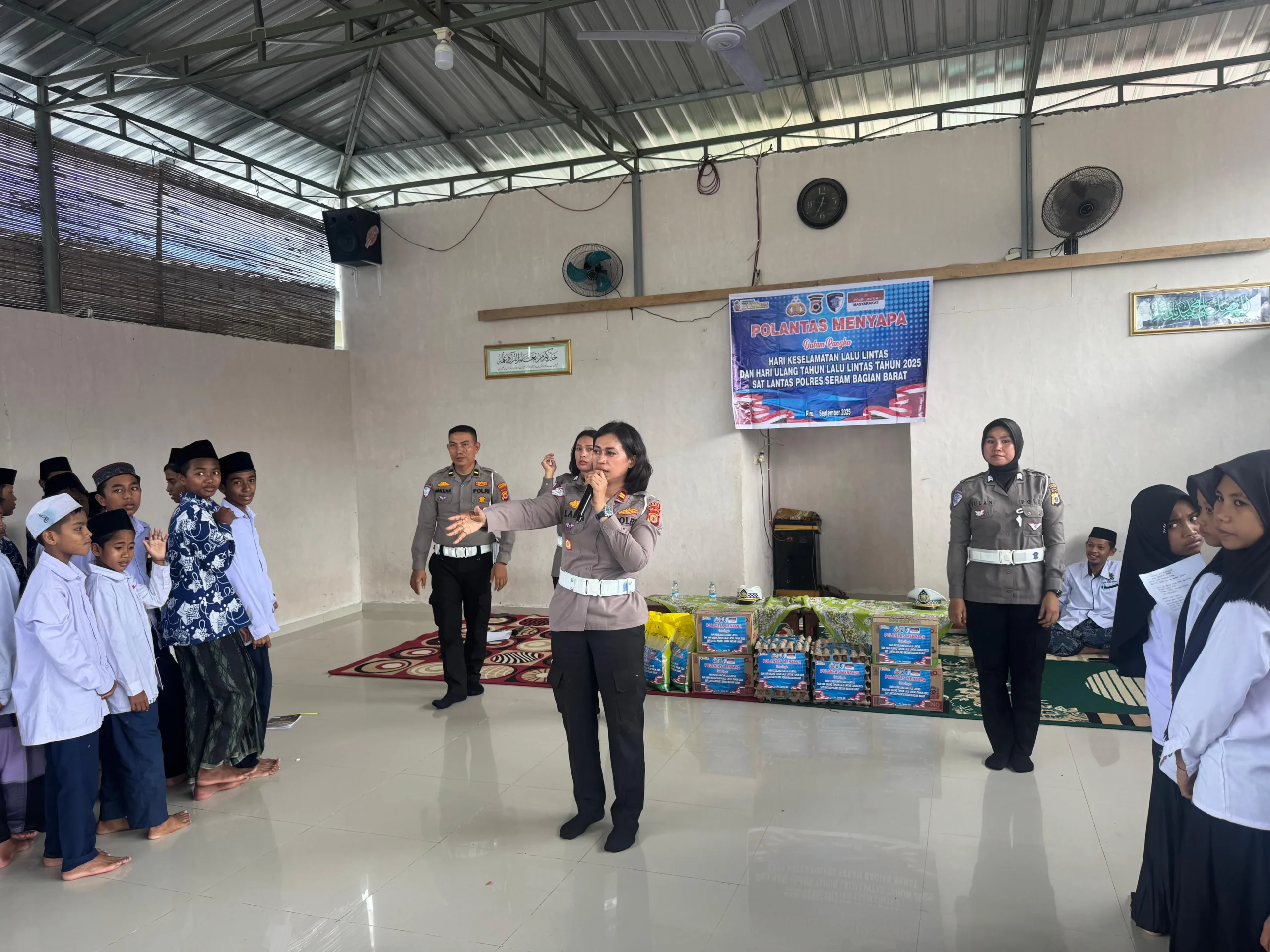 DelikMaluku29.News.Com– Satuan Lalu Lintas (Satlantas) Polres Seram Bagian Barat yang dipimpin oleh Kasat Lantas Polres Seram Bagian Barat IPTU June Carla Nanariain, bersama personel lantas melaksanakan kegiatan Police Go To School di Pondok Pesantren Desa Kamal, Kamis(4/9).