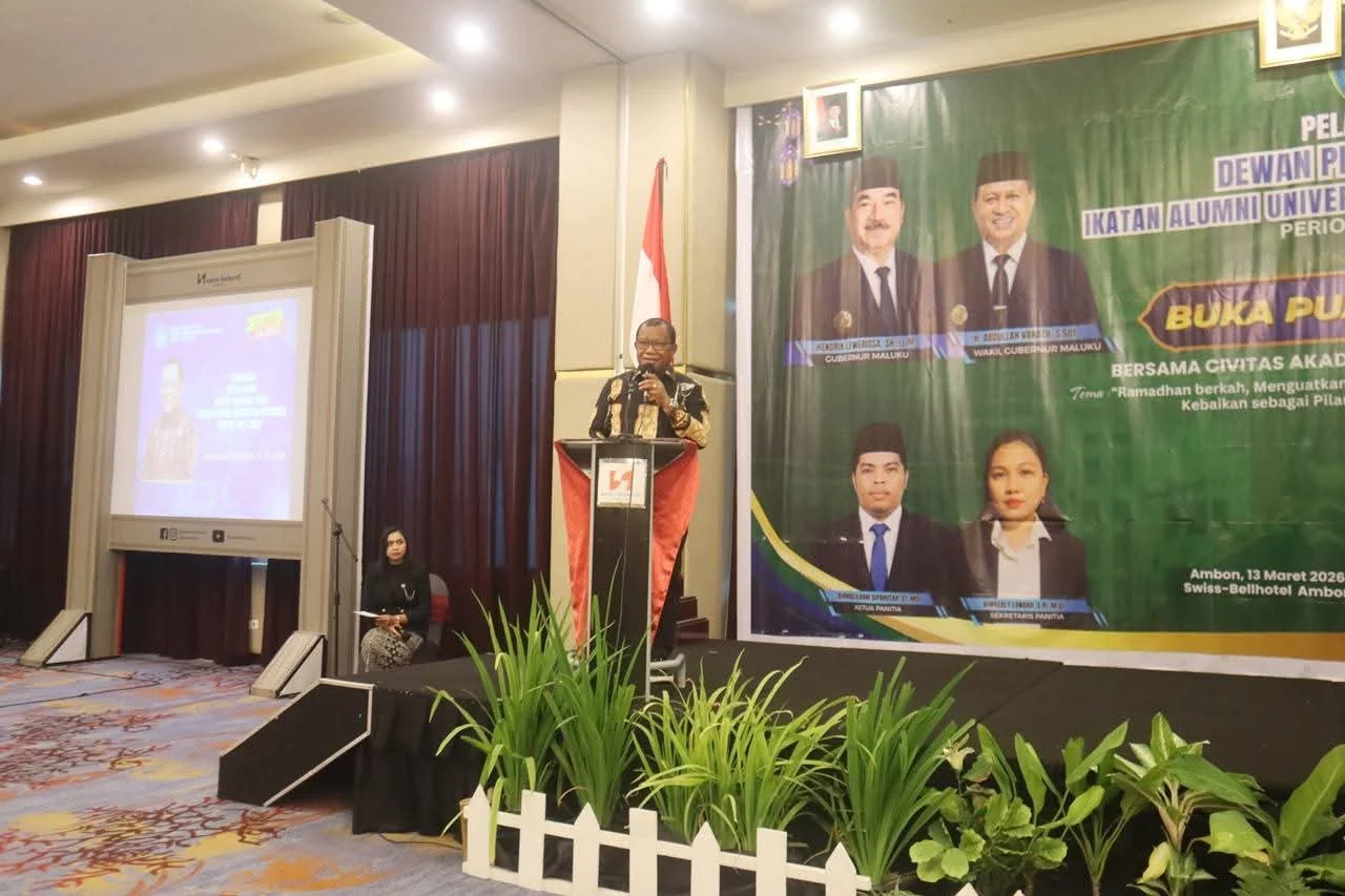 Hal tersebut diungkapkan dalam momentum Pelantikan dan Buka Puasa Bersama Dewan Pimpinan Pusat Ikatan Alumni Universitas Pattimura (IKAPATTI) periode 2025–2029, yang berlangsung di Swiss-Bel Hotel, Jumat, (13/03/2026).