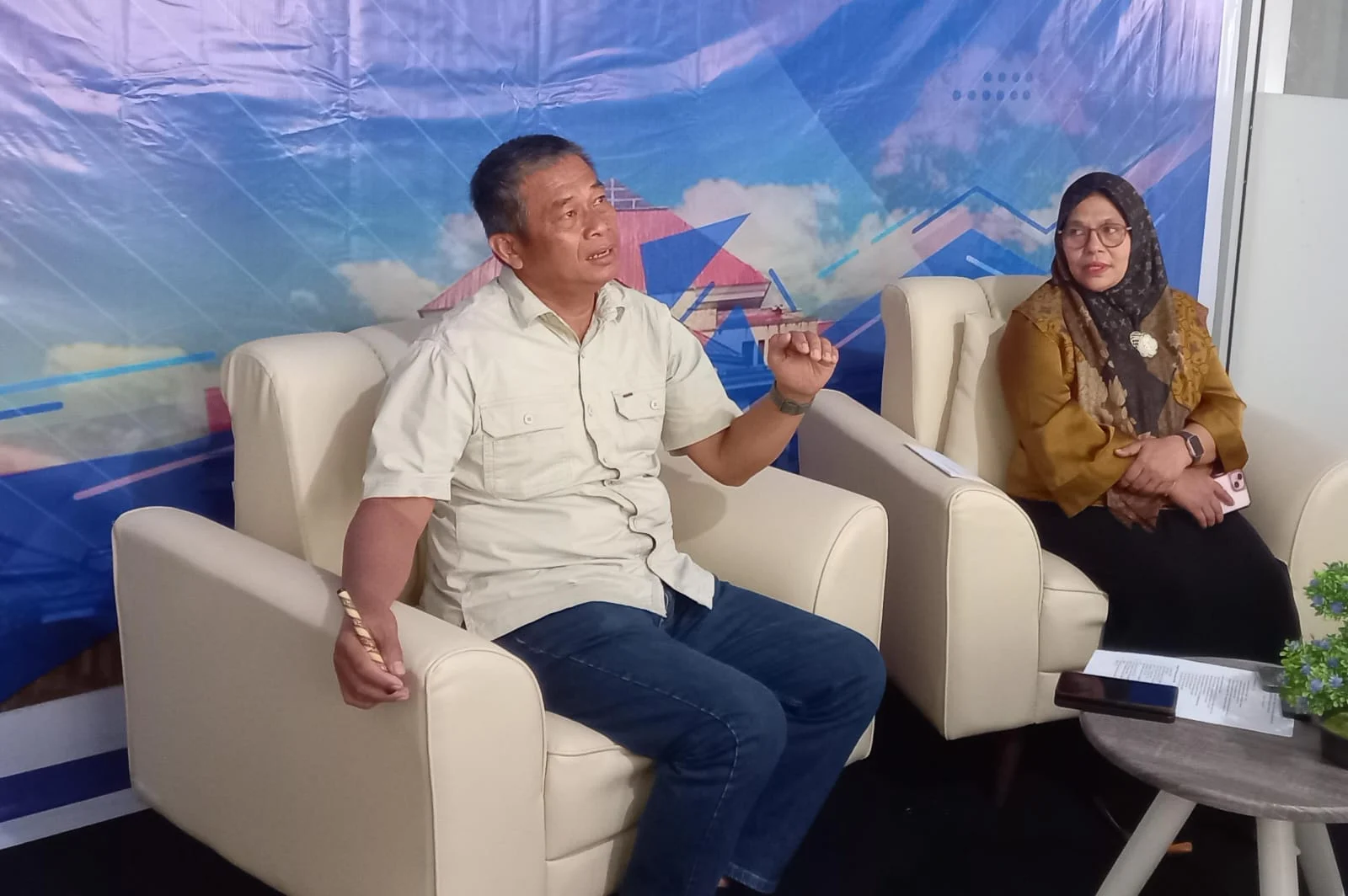 Tampak Wakil Rektor Bidang Akademik, Prof. Dr. Dominggus Malle, S.Pt., M.Sc., dan Wakil Rektor Bidang Kemahasiswaan, Dr. Nur Aida Kubangun, S.Pd., M.Pd. memberikan keterangan Pers di Lantai II Rektorat Unpatti, Jumat, (20/2/2026).