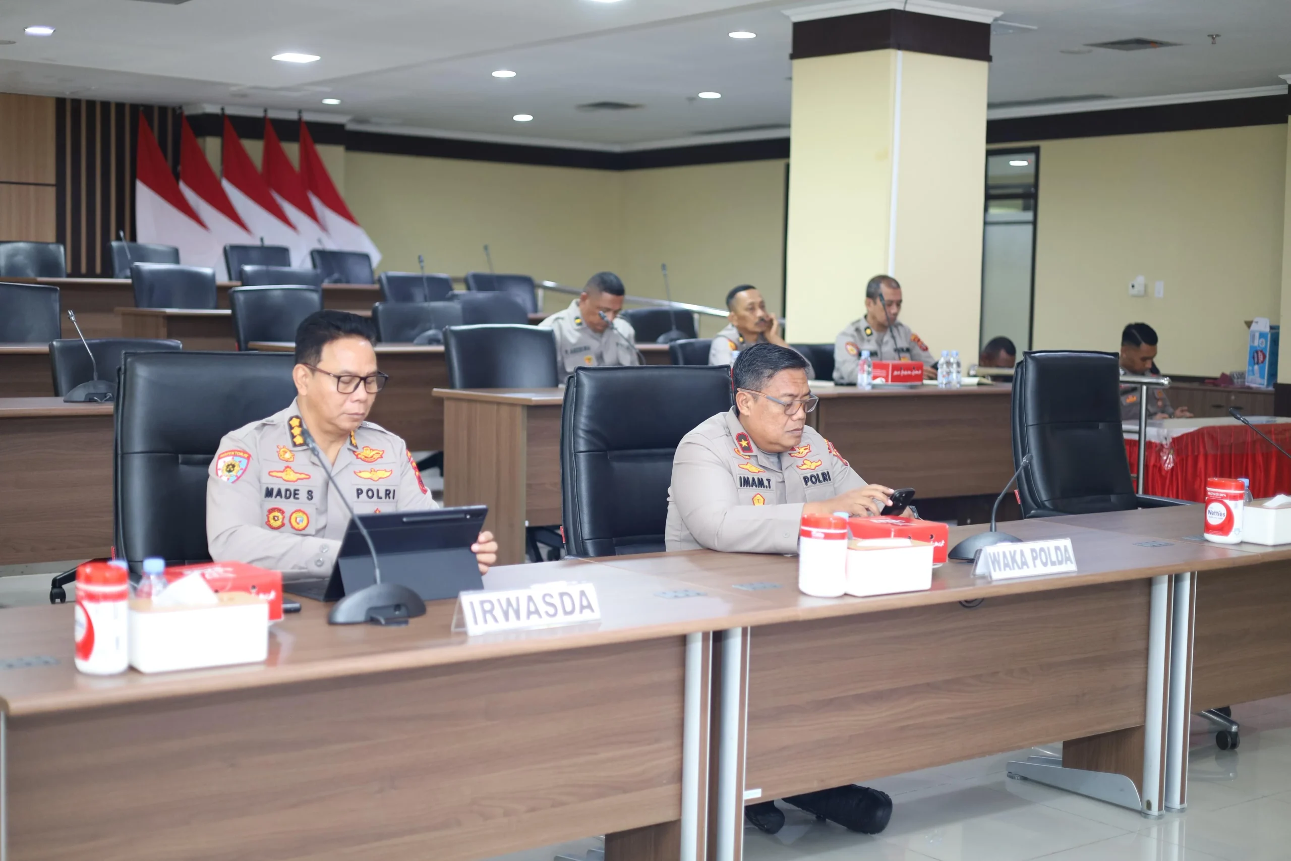 Rapat yang diikuti secara daring oleh Wakapolda didampingi Irwasda Kombes Pol I Made Sunarta dan sejumlah Pejabat Utama Polda Maluku ini berlangsung dari Ruang Video Conference Markas Polda Maluku, Tantui, Kota Ambon, Selasa (10/2/2026), .